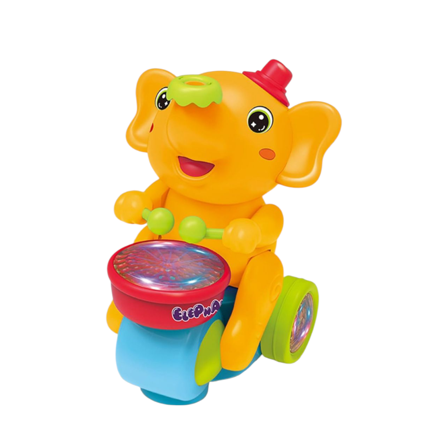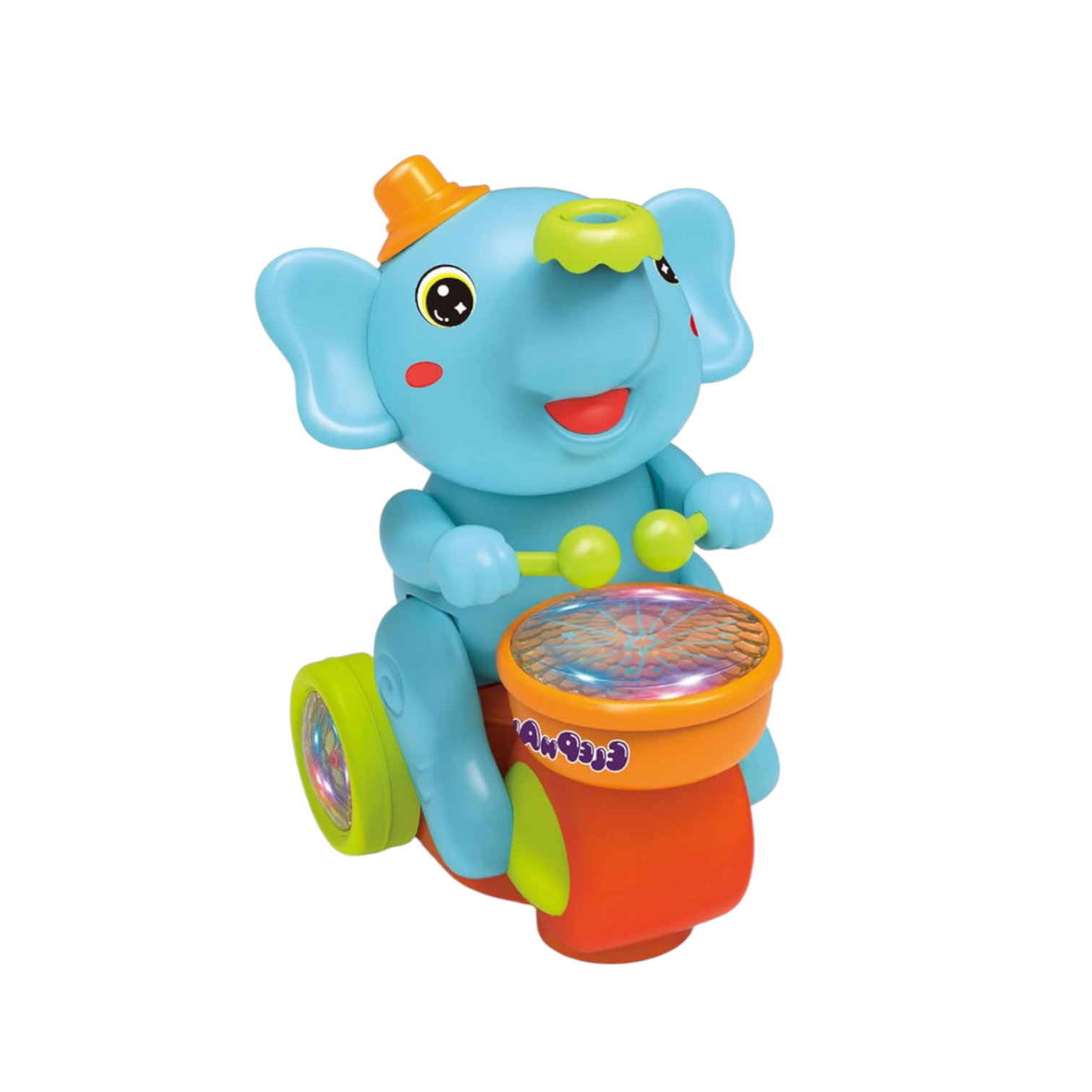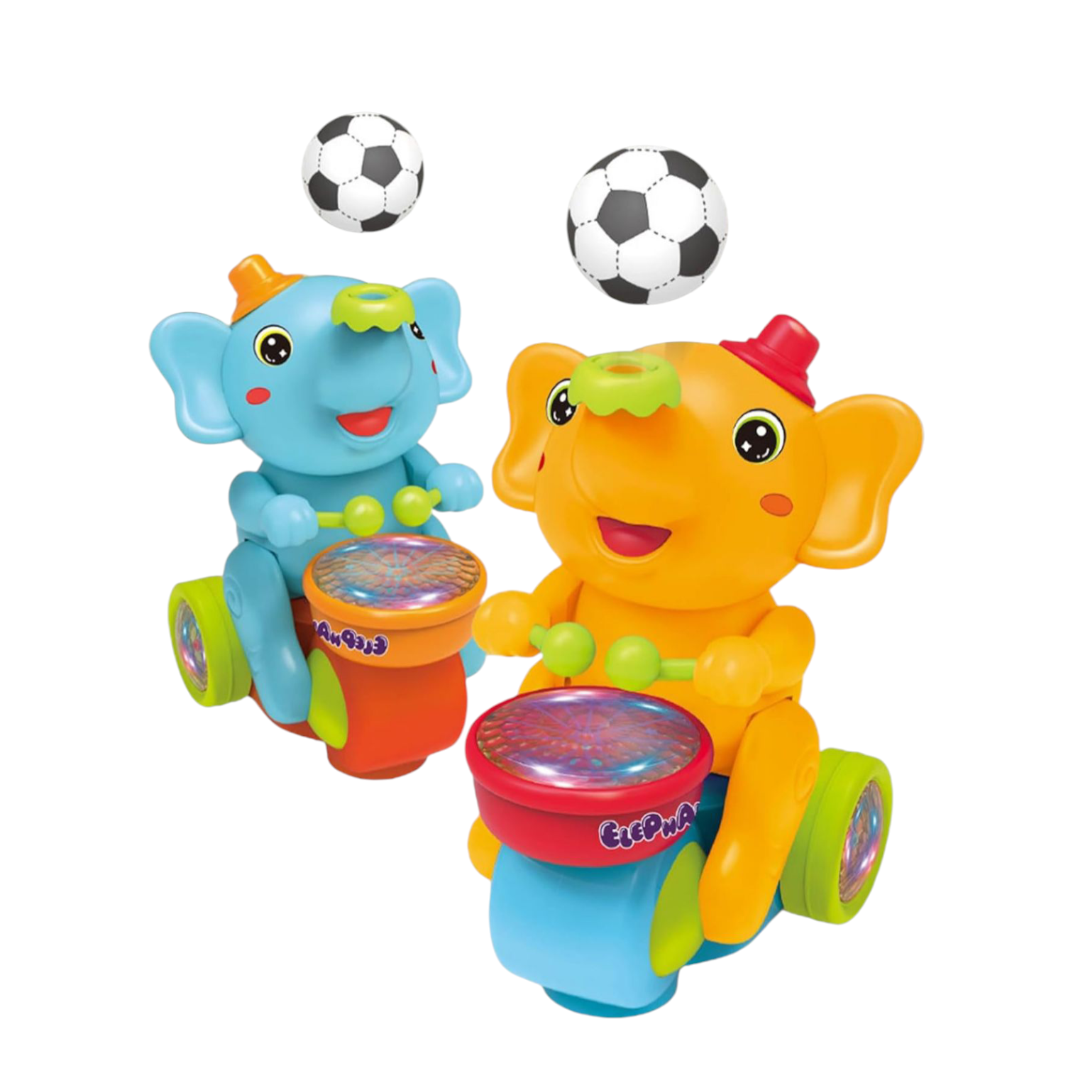 Ces adorables éléphants musiciens attirent l’attention avec leurs couleurs vives et leur ballon en équilibre. 🎶 Ils roulent, jouent de la musique et projettent des lumières pour éveiller la curiosité de bébé. Un jouet ludique et interactif qui stimule la vue, l’ouïe et la motricité. 🌈