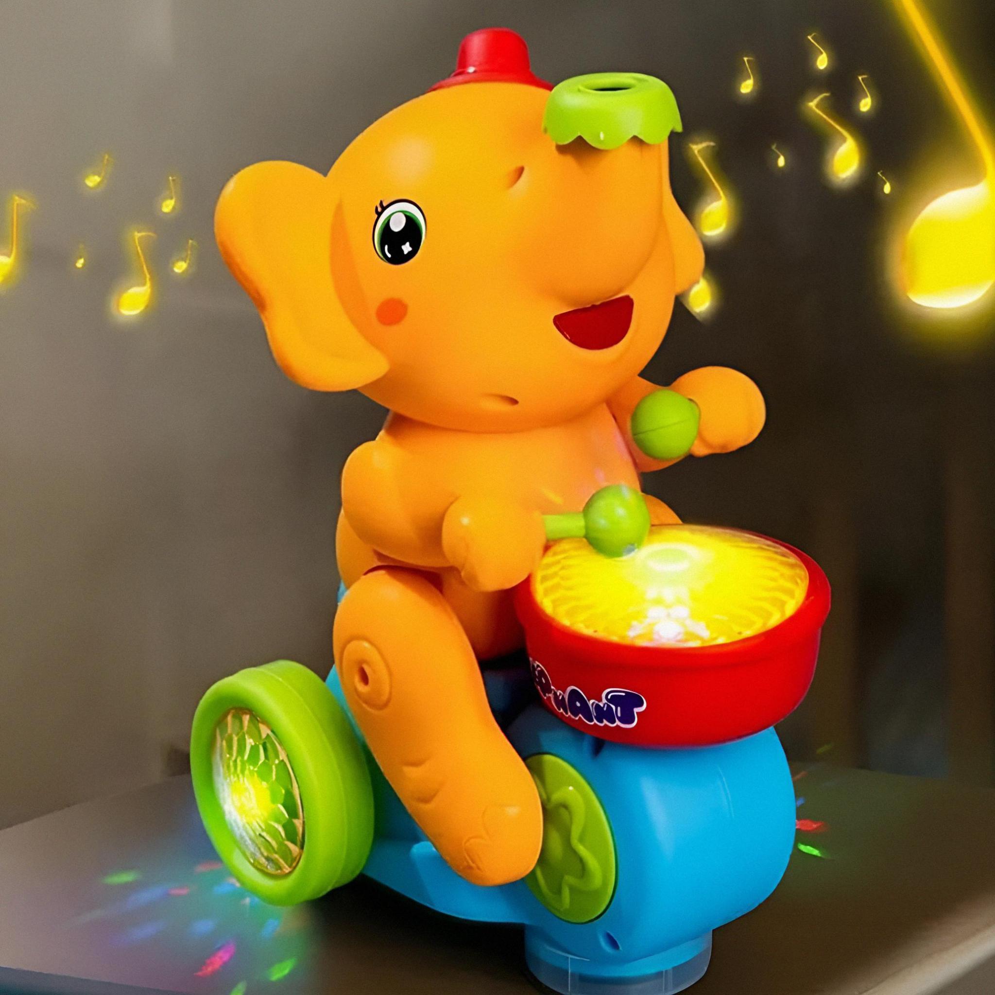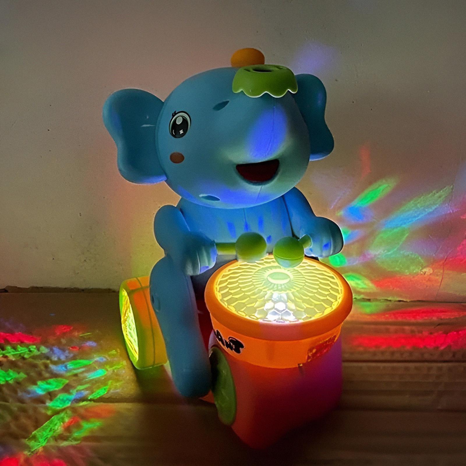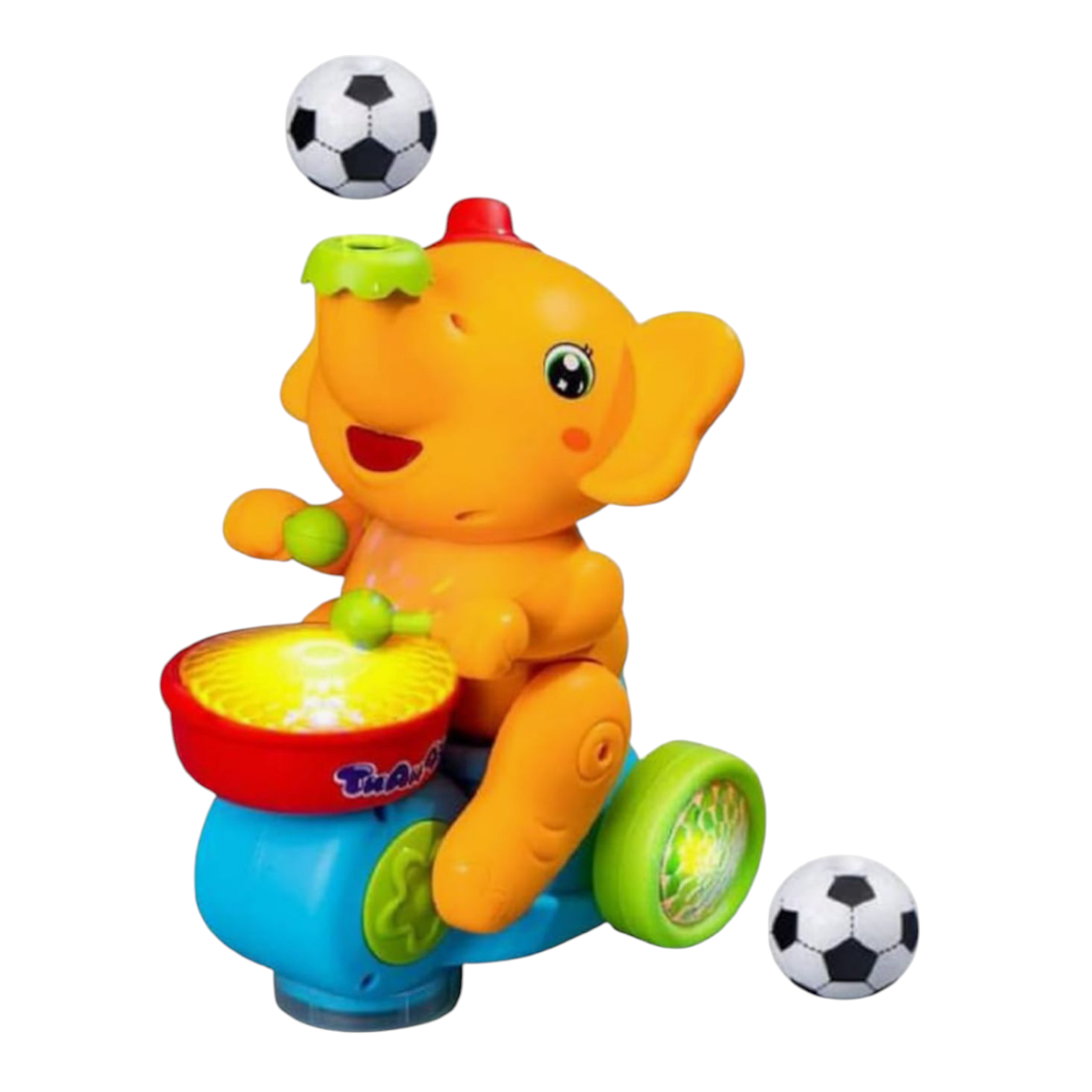 Ces adorables éléphants musiciens attirent l’attention avec leurs couleurs vives et leur ballon en équilibre. 🎶 Ils roulent, jouent de la musique et projettent des lumières pour éveiller la curiosité de bébé. Un jouet ludique et interactif qui stimule la vue, l’ouïe et la motricité. 🌈