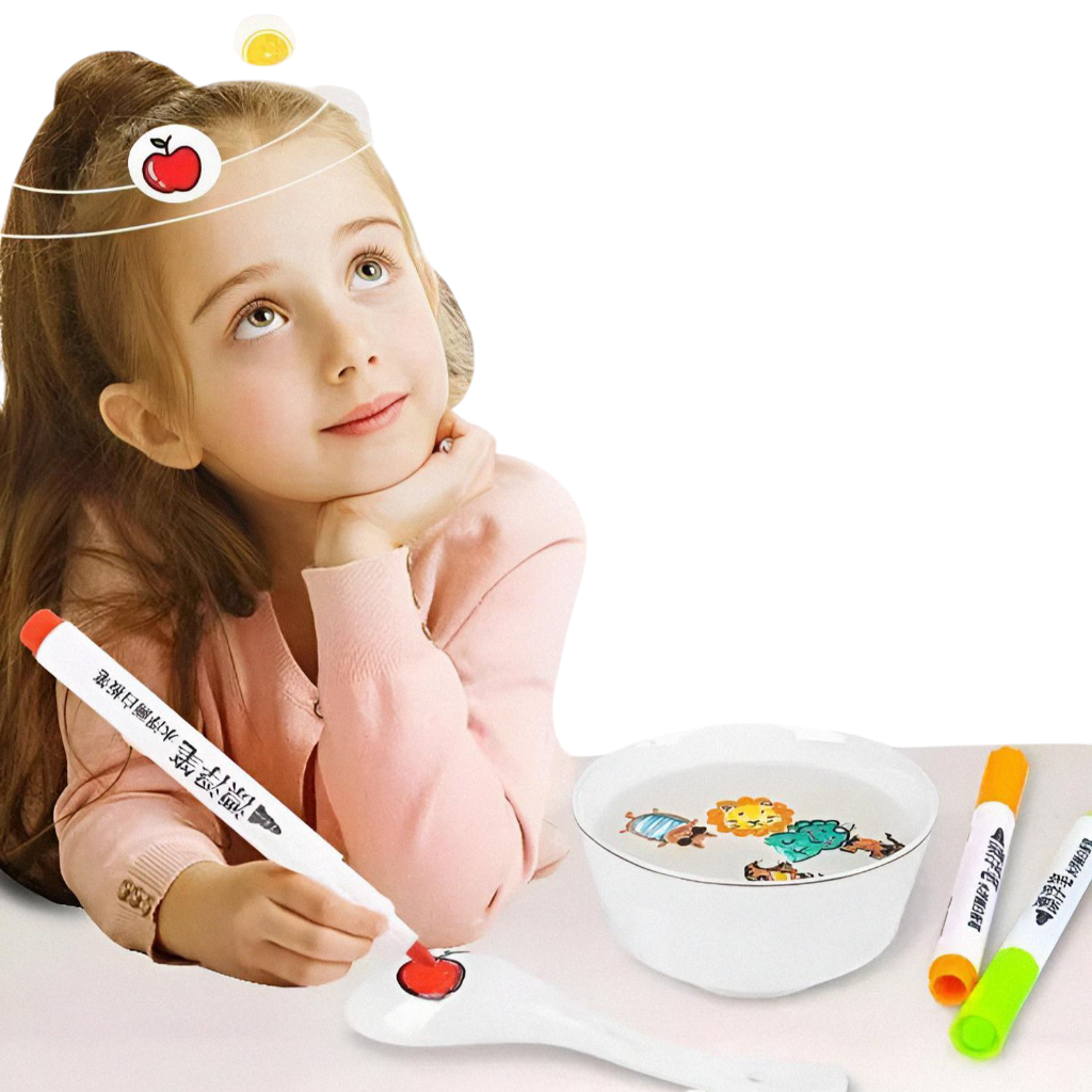 Imaginez : votre enfant dessine un poisson coloré, un papillon ou un petit cœur… puis, grâce à la cuillère en céramique incluse 🥄, il plonge son dessin dans l’eau et le voit s’animer et flotter comme par magie 🌊🎨. Les yeux émerveillés, il rit, il s’exclame… et il recommence encore et encore.